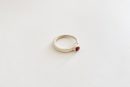 Anillo creado a mano con la púa de un tenedor antiguo de plata 800 y engaste en plata de un microplastico de color rojo recogido en las costas de Menorca.