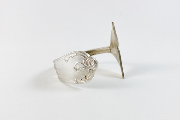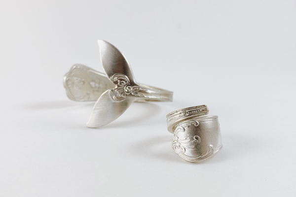 Pulsera creada a mano con una cuchara antigua de plata 800, utilizando la parte cóncava de la cuchara para crear la forma de cola de ballena o de sirena. Al estar creadas a mano, todas las piezas tienen algo que las hace especiales y únicas, este diseño además tiene todos los detalles del mango y en la parte cóncava cortada con forma de cola de ballena tiene unos detalles preciosos por ambos lados del propio cubierto antiguo, lo que hace de la pieza un diseño muy especial y el plata mate, lo que hace todavía más especial la pieza, ya que es muy complicado encontrar cubiertos antiguos con tantos detalles.