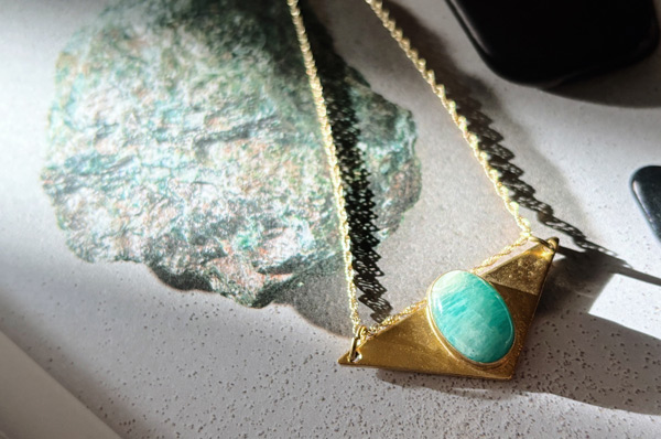 Collar Triángulo Amazonita - Baño oro 24kt.