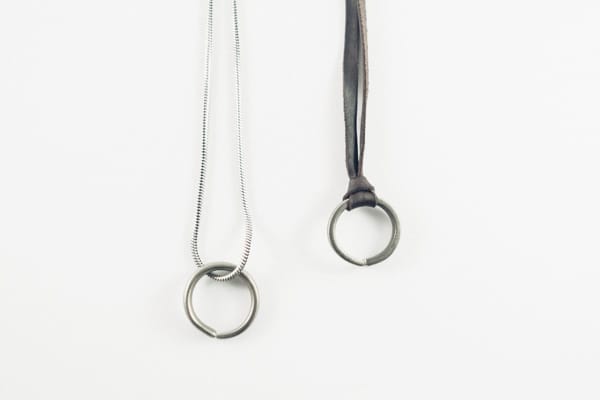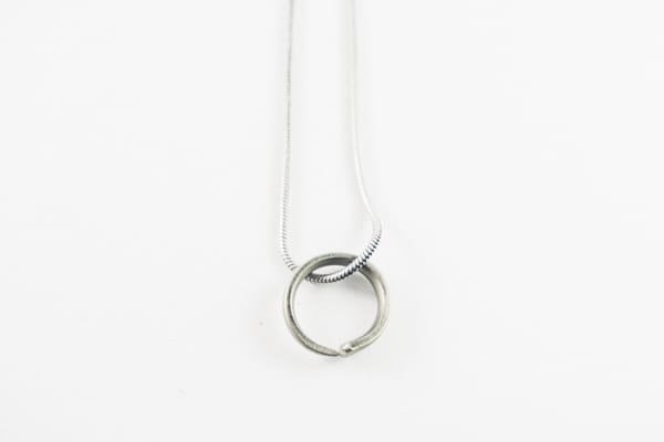 Handmade necklace with a prong from a large nickel silver fork twisted into a circular shape. The size of this pendant may vary slightly depending on the size of the cutlery used.