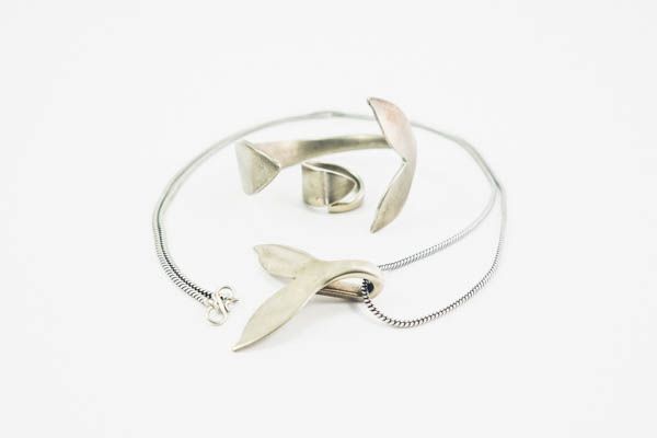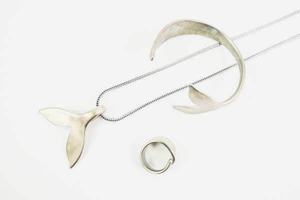 The necklace is the largest whale fin model and measures approximately 5 cm. As it is a larger design, I combine it with a 75 cm long silver-plated chain. If you prefer, it could also be combined with leather; in this case, you can include a note when placing your order.